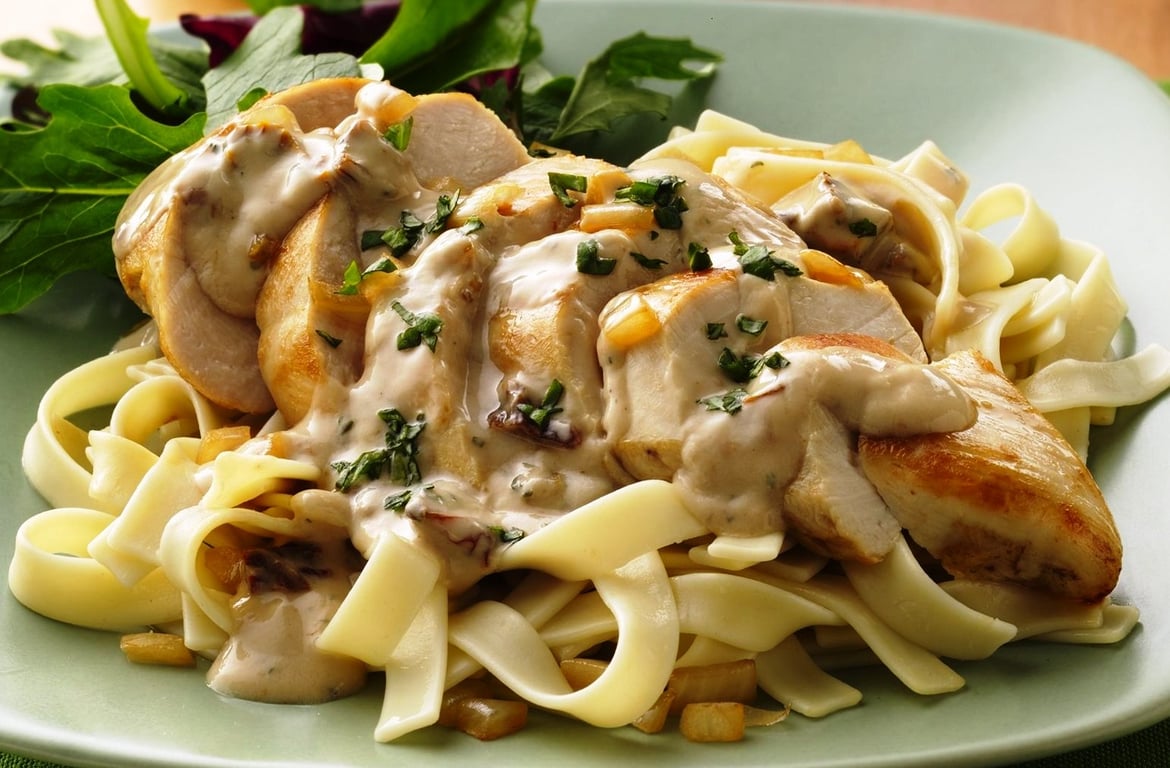 FETTUCCINI NOODLES TOSSED IN A HEARTY PARMESAN CHEESE SAUCE, CHICKEN & SHRIMP