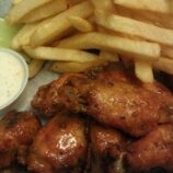 7 Bone in wings with your flavor choice and fries. served with Ranch and Celery sticks.